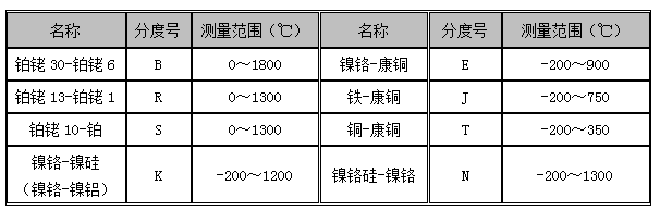 2、熱電偶種類