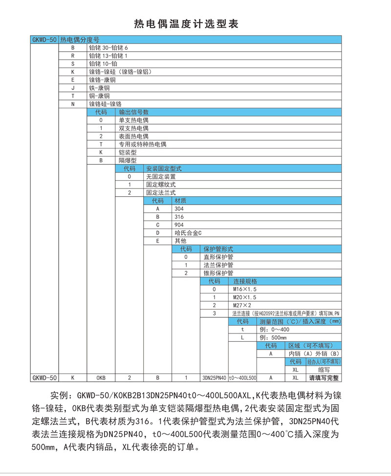 GKWD-50熱電偶溫度計是利用熱電效應為原理測量多種生產過程中從-200~1800℃范圍內的液體介質、氣體介質、蒸汽以及固體表面等的溫度,現已成為中高溫溫度遠傳儀表的理想選擇。